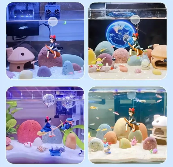 Crafted with care, each piece features a cute little witch with detailed facial features, clothing, and posture—adding personality to your tank. -