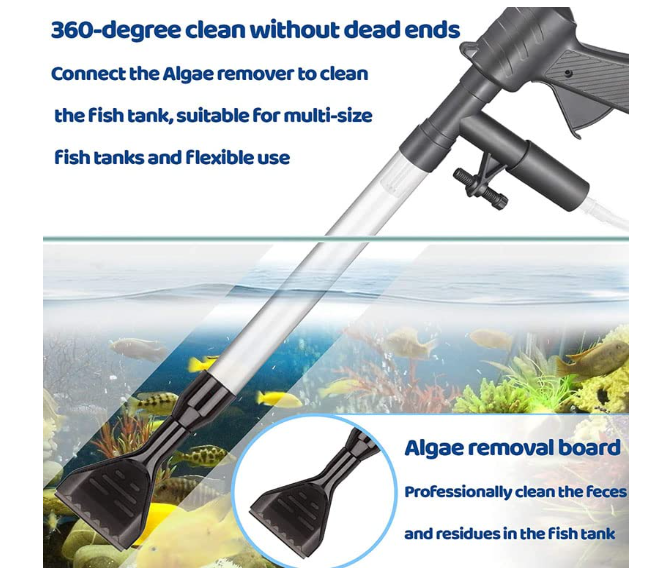 • ✔ 3-in-1 Functionality – Combines gravel cleaning, water changing, and algae scrapping in one device for complete aquarium care.