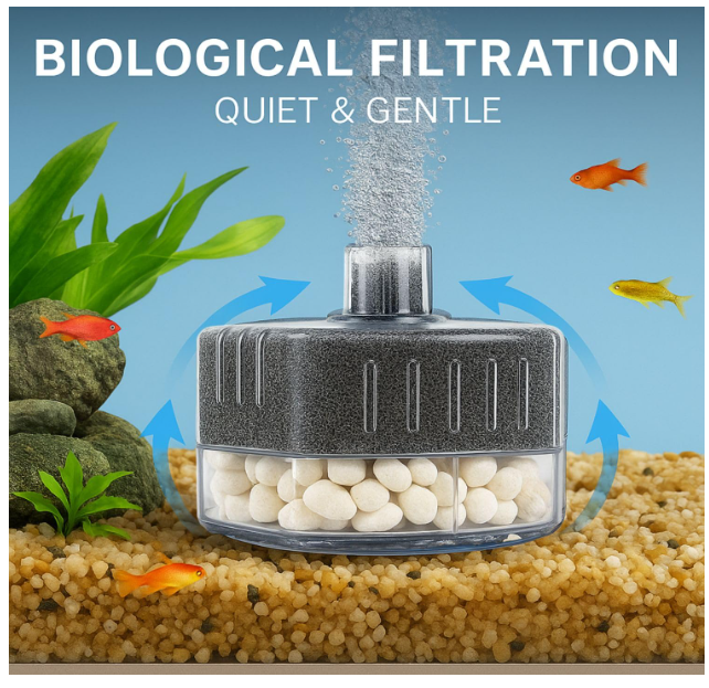 💨 Air-Powered Filtration – Uses gentle air bubbles to circulate and oxygenate water, keeping your tank healthy.