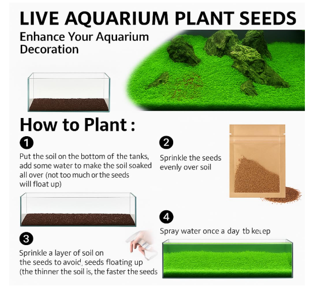 These seeds sprout quickly when placed on substrate with adequate light. Within days, you’ll notice fresh green shoots forming a beautiful carpet that enhances the entire aquarium environment.
