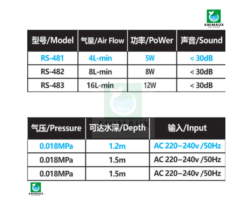This pump supports two outlets, so you can aerate two air stones, sponge filters or decorations simultaneously — useful when you have more than one tank or want better dispersion of air in a single setup. The casing appears to be made of a transparent or semi-transparent material (as the marketing indicates “Inspiring Transparent”) so you can see the internal motor or air chamber — which gives a modern aesthetic and makes it easier to spot if something’s a miss. It is marketed as “super quiet” (or low-noise) — good for living rooms, offices or bedrooms where you don’t want audible pump noise. Typically these dual-way pumps from the same brand consume in the range of 3-5 W. For example, the RS-390 is 5 W and features two outputs. It can be used in both freshwater and saltwater applications (depending on your set-up), for driving air stones, sponge filters, bubble decorations, and supporting biological filtration.