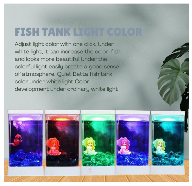 💡 Multi-Color Changing LED Light – USB-powered LED system with vibrant color transitions 🌈, creating a magical ambiance for you and your Betta.