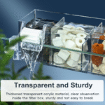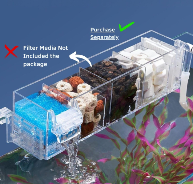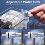 This aquarium top filter or top filter for aquarium can also act as an aquarium filter waterfall, giving a natural water flow effect while enhancing oxygen levels — ideal for promoting oxygen for aquarium life. For added aeration, you can pair it with an aquarium air pump with filter, fish oxygen filter, or aquarium oxygen pump with filter.