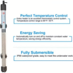 Our submersible aquarium heater features an adjustable thermostat control and temperature controller, allowing you to set and maintain the ideal temperature range. With overheat protection and waterproof design, it ensures reliable and safe operation at all times. Whether you need a small aquarium heater for a nano tank, a 10-gallon aquarium heater, or a 300-watt aquarium heater for larger tanks, this device offers precise and efficient heating.