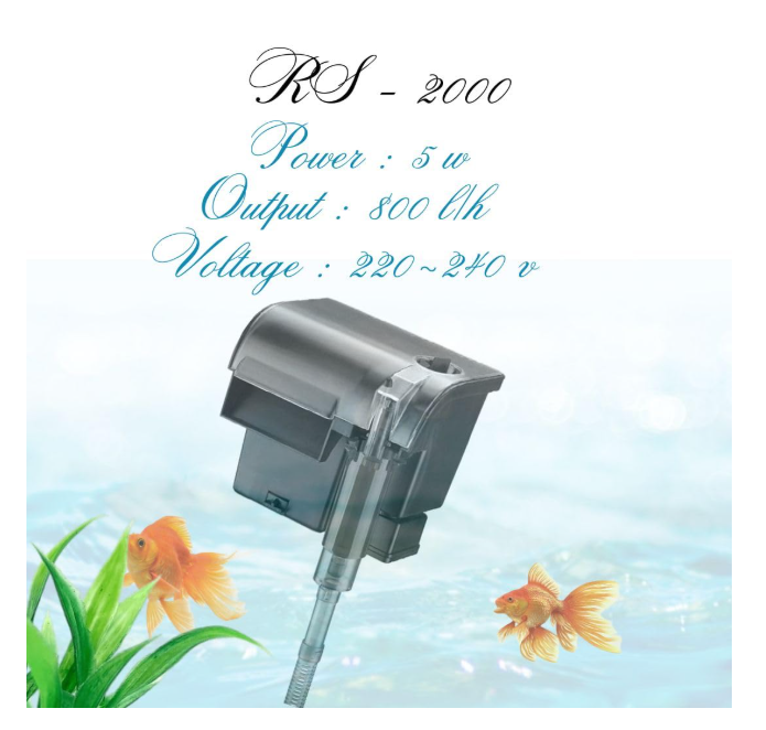 Rs-2000 Water Fall Style Bio Mini Hang On Filter For Aquarium Fish Tank Power : 5W Output : 800L/H