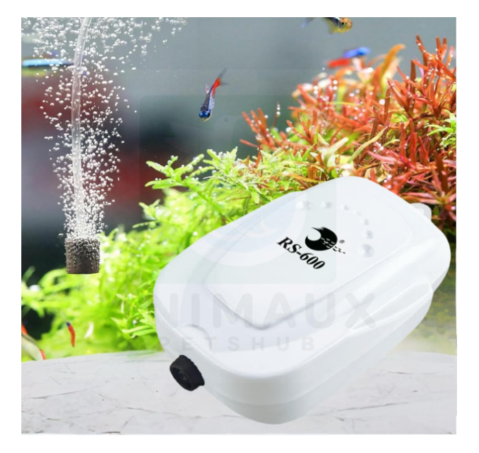 RS-600 AQUARIUM AIR PUMP OFFERS HIGH-EFFICIENCY OXYGENATION FOR YOUR FISH TANK. WITH ADJUSTABLE AIR OUTPUT AND QUIET OPERATION, IT ENSURES OPTIMAL WATER CIRCULATION AND A HEALTHIER AQUATIC ENVIRONMENT. ITS COMPACT DESIGN FITS SEAMLESSLY INTO ANY SETUP, MAKING IT A RELIABLE CHOICE FOR BOTH FRESHWATER AND SALTWATER AQUARIUMS. ELEVATE THE HEALTH AND VITALITY OF YOUR AQUATIC ENVIRONMENT WITH THE ANIMAUX RS-600 AQUARIUM AIR PUMP. DESIGNED FOR HIGH-PERFORMANCE AND RELIABILITY, THIS AIR PUMP ENSURES OPTIMAL OXYGENATION AND WATER CIRCULATION IN YOUR FISH TANK. IT IS AN ESSENTIAL TOOL FOR CREATING A THRIVING AQUATIC HABITAT.