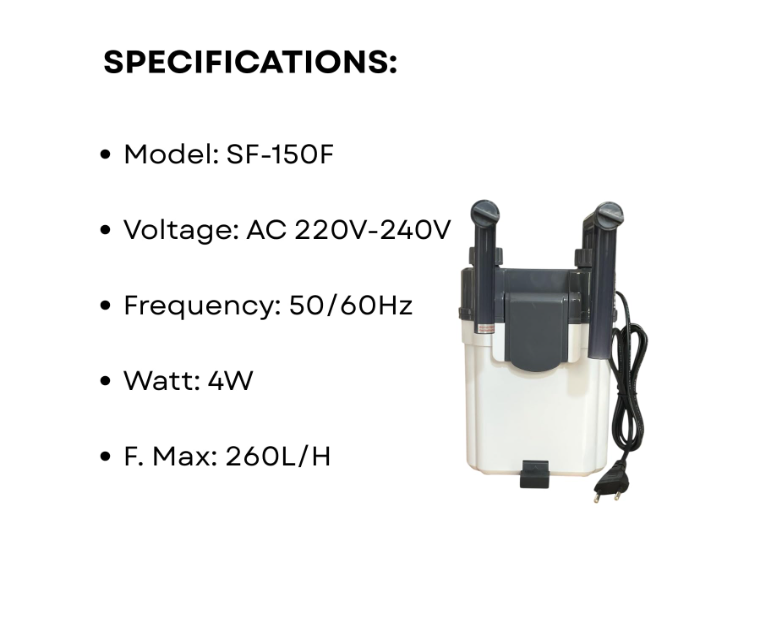 SF-150F Mini External Canister Filter for Aquarium Fish Tank | Power : 4W | Output : 260L/H