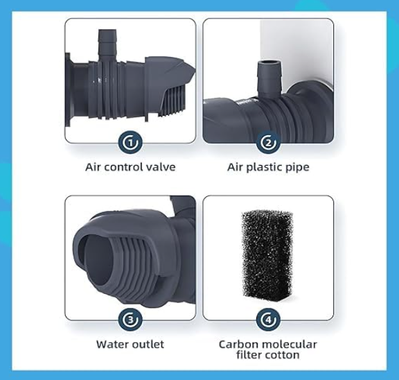 This aquarium top filter or top filter for aquarium can also act as an aquarium filter waterfall, giving a natural water flow effect while enhancing oxygen levels — ideal for promoting oxygen for aquarium life. For added aeration, you can pair it with an aquarium air pump with filter, fish oxygen filter, or aquarium oxygen pump with filter.